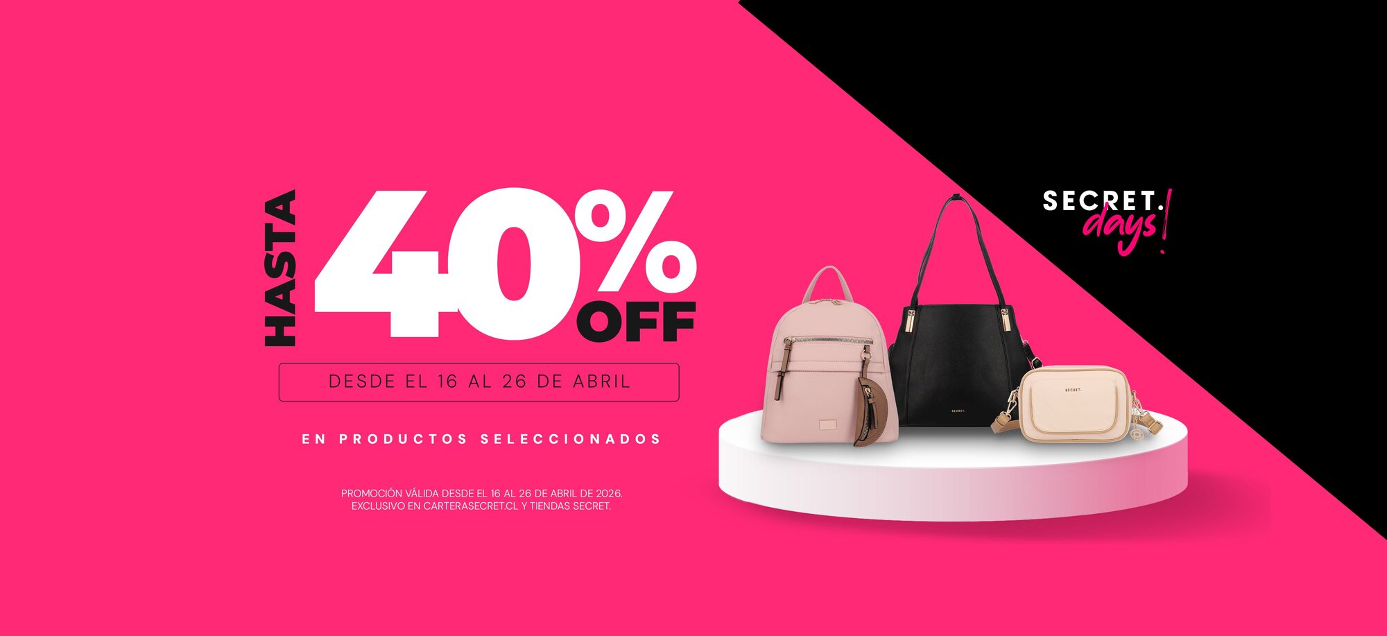 ©2025 Carteras Secret | Samsonite Chile S.A. – Casa Matriz: Av. Manquehue Norte 160, Piso 12, Las Condes. Santiago, Chile.
